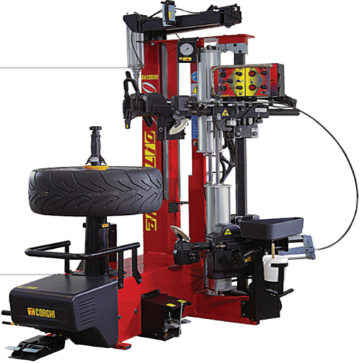 Máy ra vào lốp xe con không sử dụng lơ via (1 pha,màu đỏ RAL 3002) (bao gồm guốc ép và bàn nâng bánh xe)